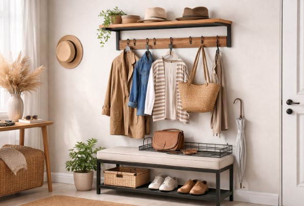 Vienas iš pagrindinių sieninių kabyklių privalumų – jos skatina tvarką. Kai kiekvienas daiktas turi savo vietą, sumažėja chaoso pojūtis ir lengviau palaikyti švarą. Drabužiai nekaupiami ant kėdžių ar sofų, o kabinami ten, kur jiems ir priklauso būti.